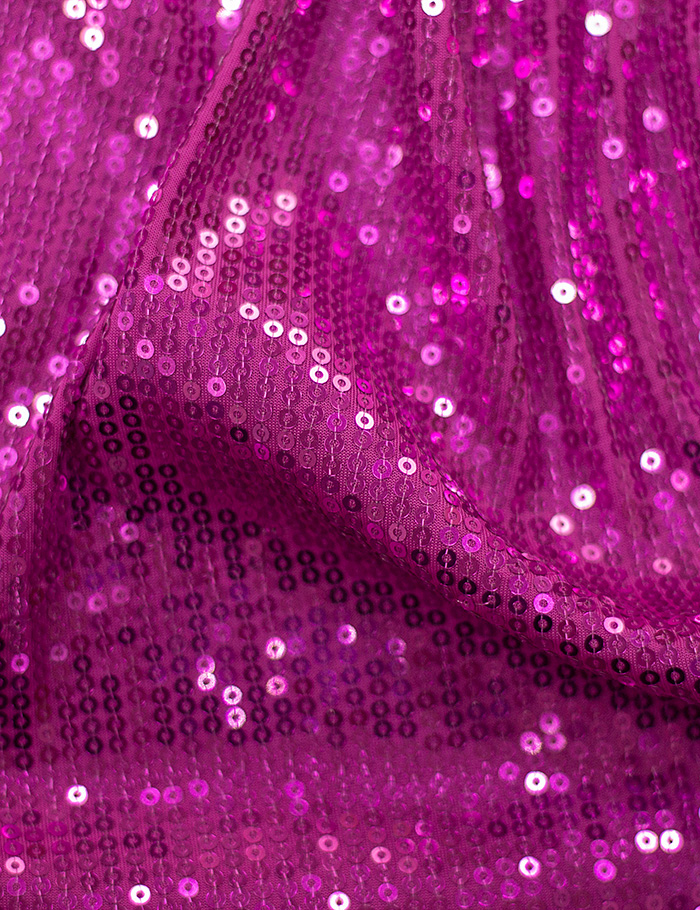 Переливающийся материал, основа которого тонкий трикотаж. Полотно вышито блестящими зеркальными пайетками-кругами, диаметр пайетки 0.3 см. Подходит для декорирования элементов костюма, пошива вечерних нарядов, концертных и танцевальных костюмов.