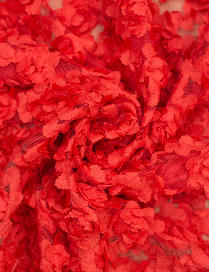 Ткань Сетка объемная 3D Розы, красный