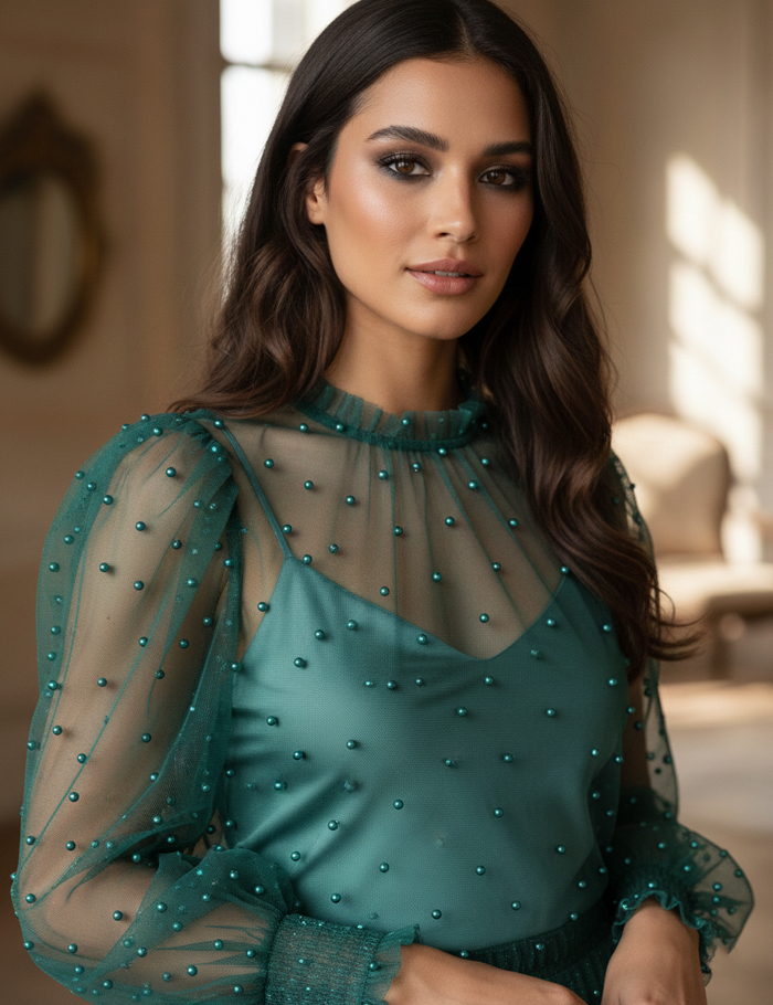 Ткань Жемчуг на Сетке, изумруд 13